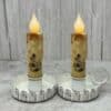 Joyful Easter timer taper has a grungy, burnt ivory wax coating. The center portion of the taper is embedded with the image of two baby chicks and a wagon with the phrase, “A Joyful Easter”. It has a built-in timer function that keeps the candle lit for 6 hours, then off for 18 hours.