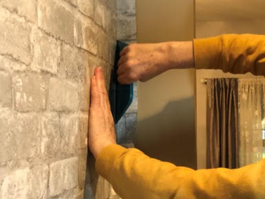 To start the second piece you need to match the bricks at the top of the wall with the paper you just applied I found the bricks that matched before I peeled the backing of the wallpaper so I would have an idea where I needed to start with the new piece, this is the only problem I had with the this wallpaper I matched the top few bricks then the next two or three were slightly different but it really isn’t noticeable unless you are really look close and were looking for the difference. Once you know which brick you need to start at peel back the backing and applying the wallpaper to the matching bricks, you are going to overlap the wallpaper about a ¼ inch or so, work the wallpaper towards the ceiling with the smoothing tool making sure your wallpaper is even. Next keep peeling about 12 inches of backing at a time and continue working your way down the wall using the smoothing tool as you go until you reach the bottom then cut the wallpaper the same way you cut the first piece.