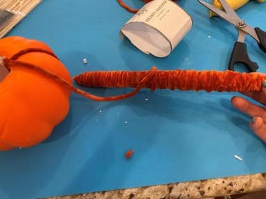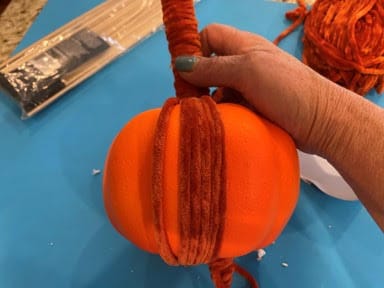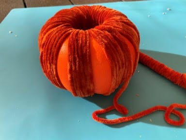 Repeat the above yarn wrapping steps to your other two pumpkins.