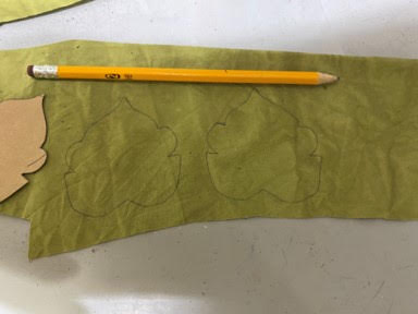 The first thing you will need to do is print and cut out the leaf pattern. I color my own fabric to make my leaves if you would like to see how I do this you can look up my blog on how I color and coffee stain fabric, but you can just use any fabric you would like to make the leaves. You need to trace and cut out two leaves for every leaf you want to make.