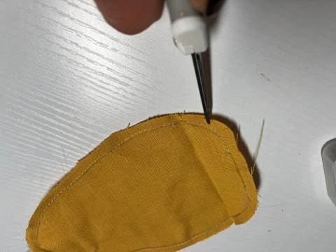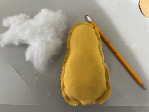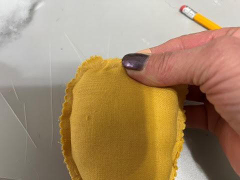 Remove your sewing pins, make little snips with your scissors around all curves this will help with any puckering of the fabric when you turn right side out. Next turn right side out and stuff firmly with your polyester fiberfill. I like to use the eraser end of a pencil to push my stuffing in. Sew the opening closed with matching tread and needle.