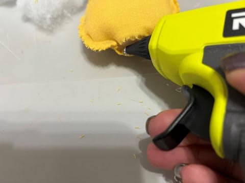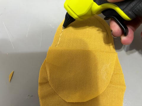To hot glue on the wings add a line of hot glue to the top of the wing and glue in place where indicated on the pattern.