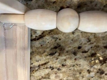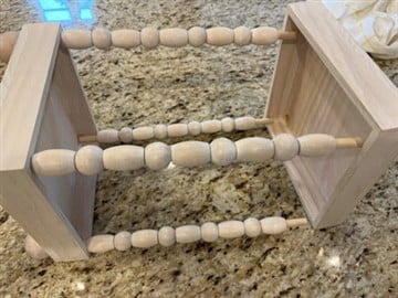 The first thing to do is to place the wood beads onto the dowels. You are going to use 5 oval wood beads and 4 round wood beads per dowel. Start with a oval bead then a round bead and continue alternating the beads ending with a oval bead. Repeat this step to the other three dowels.