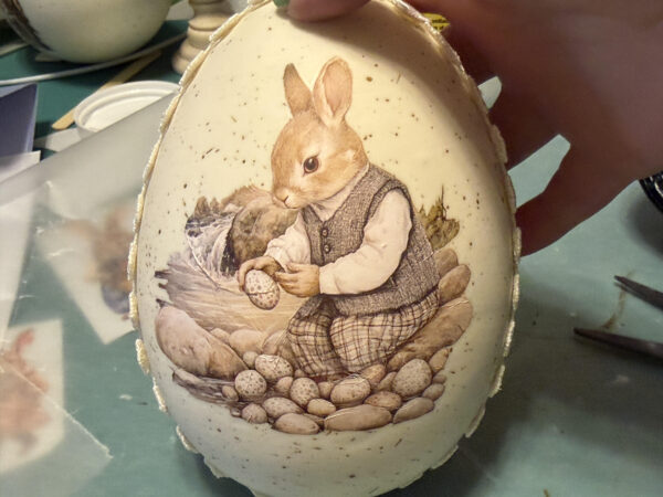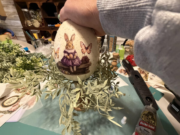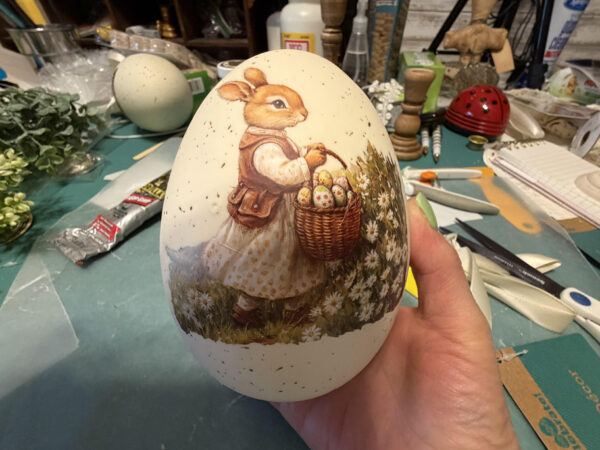 The pedestal bunny eggs are not finished! I hope you enjoy making them. I applied decals to both sides of the eggs so you wouldn’t see a plain side if they are used on a table.You can see the two sides of my pedestal bunny eggs in the photos below.