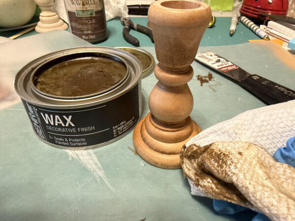 - Behr dark wax or Waverly Antiquing Wax