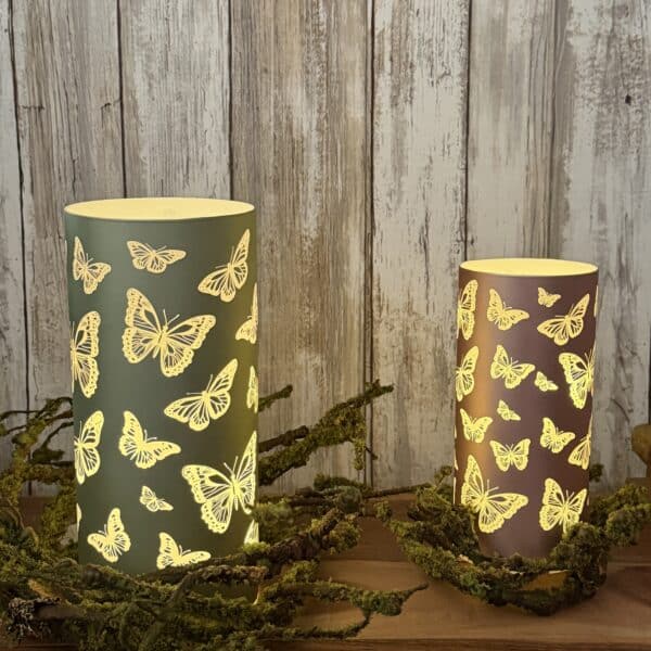 Set of 2 Glass Butterly Timer Luminaries