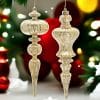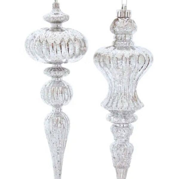 These silver distressed finish finial ornaments from Kurt Adler is a beautiful addition to any holiday décor. Each 12-inch finial in this assortment has a unique shape and can be used for both residential and commercial decorating.