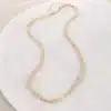This gold tone bead and hammered circle stretch necklace has one large hammered circle in the middle for hanging a pendant, with smaller circle accents. Beads are 13mm in size. Necklace is 21″ long.