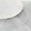 Silver tone chain necklace. 30″ in length with a 2″ extender and has a silver tone circle that is perfect to pair with many of our magnetic or claw clasp pendants.