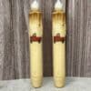 This taper is wax dipped with a cardinal in the center of the taper and has a timer.