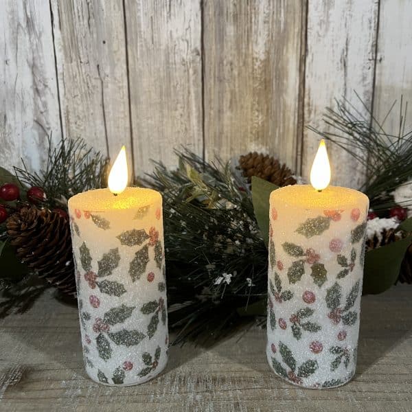 These 4″ holly votives come in a set of two . Their subtle lighting will set the perfect mood for your holiday decor. With their classic festive patterns, they are the perfect way to add a warm and comforting glow to your holiday season.