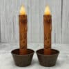 This is a 4” grungy hand dipped primitive LED timer taper. Timer will activate when 1 “AA” battery (not included) is inserted.