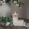 Primitive Aesthetic: The glass is adorned with a muted red, white, and blue bunting design for a “found antique” look.