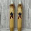 This taper is wax dipped with a American star with the word American in the center of the taper and has a timer.
