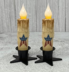 This taper is wax dipped with a American star with the word American in the center of the taper and has a timer.