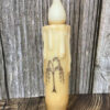 This taper is wax dipped with a primitive star in the center of the taper and has a timer.