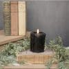 Add a warm glow of a candle to your home with this realistic black 3D pillar candle. Pillar candle has a black wax drip coating and a built in timer. Candle will stay lit for 6 hours and off for 18 hours. Candle requires 2 “AA” batteries (not included).