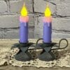 Light up a charming home display with this set of two 6” Birch Timer Tapers. The tapers are wax dipped and have a realistic flame. Each taper requires 2 “AAA” batteries (not included). Timer function will start when taper is turned on, they will stay lit for 6 hours and off for 18 hours.