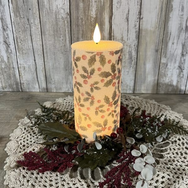 This 6″ holly pillar candle is the perfect way to add a warm, comforting glow to your holiday season. Its subtle lighting will set the perfect mood for your holiday decor. The classic festive patterns make it a great way to add some holiday charm to any room.