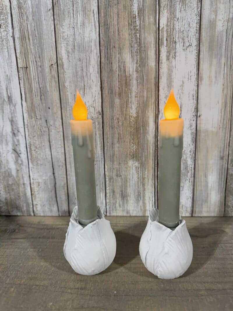 Brighten up your space with this sleek set of 2 – 6″ Laurel green LED timer tapers. These elegant taper candles flicker with soft green LED light and feature a built‑in timer for automated on/off control, giving you cozy ambience without the flame. Powered by 2 AA batteries (not included).
