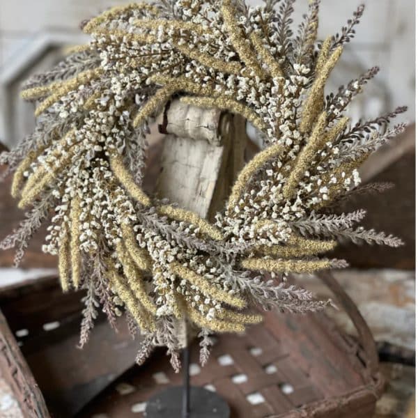 This Nature’s Cream Yield Candle Ring is a neutral collection full of texture and charm that would be perfect for your favorite candles! Sprays of tiny bubble berries mixed with lavender like spires.