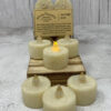 6/Pack Burnt Ivory Timer Tealights are a set of six burnt ivory tealights with amber-colored, flame-like tips and a rustic wax coating. Tealights are battery-operated and feature a built-in timer that runs for 6 hours then turns off for 18 hours. They look great on trays, tabletops, or windowsills and require M84020 replacement batteries. Measures 1.75″ high by 1.75″ in diameter.