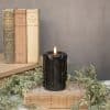 Add a warm glow of a candle to your home with this realistic black 3D pillar candle. Pillar candle has a black wax drip coating and a built in timer. Candle will stay lit for 6 hours and off for 18 hours. Candle requires 2 “AA” batteries (not included).