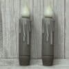 This taper is waxed dipped and has a tier. The timer function will start on its own once 2 “AA” batteries (not included) are inserted.