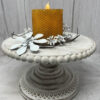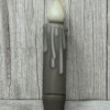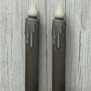 This taper is waxed dipped and has a tier. The timer function will start on its own once 2 “AA” batteries (not included) are inserted.