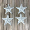 This set includes 4 whimsical rusty metal country starts that measure 8” tall by almost 6” wide. They have a primitive rust patina. Each star has hole at the top for optional hanging. They are perfect for your country décor, craft projects, or holiday trimming.