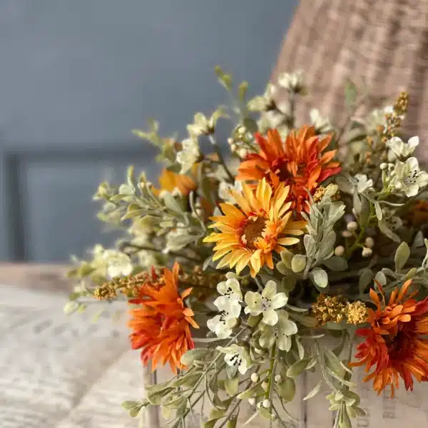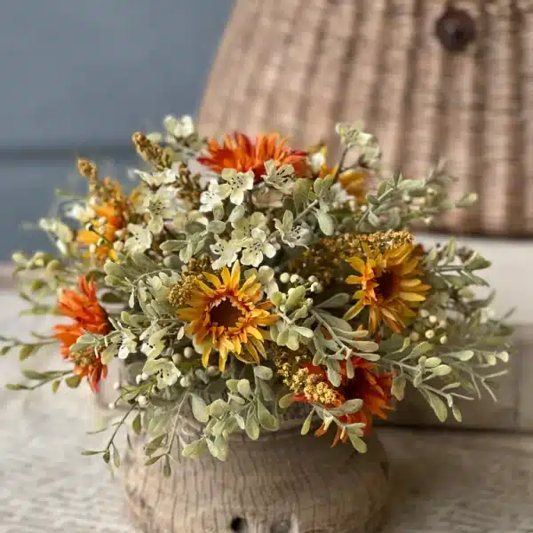 A lovely melody of wildflowers in beautiful autumn hues are accented with berries, spires and pretty foliage to truly embrace the beauty of fall. Makes a wonderful transitional floral.