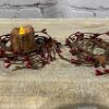 The small berry candle ring is wrapped around wire branches and covered with brown floral tape. It has a 1.5” inner diameter and has an approximate 3” outer diameter.
