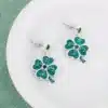 Silver tone earrings featuring a crystal Easter bunny face design on shepherd hooks. Bunny face charms measure around 1.25” in height.