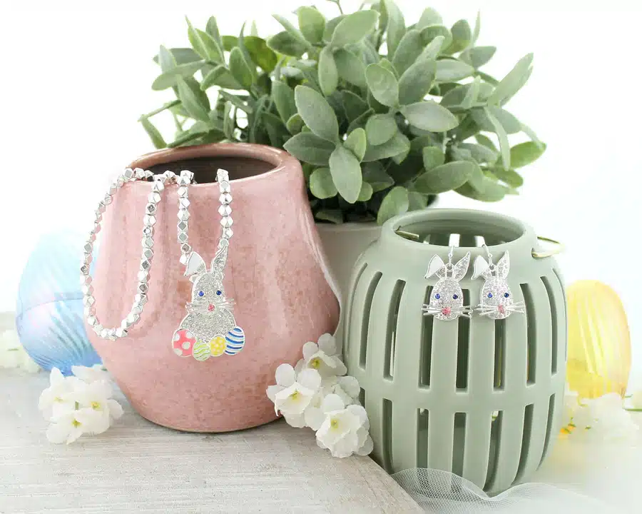 Complete your ensemble with a Crystal Bunny with Egg pin/pendant. Sold separately.