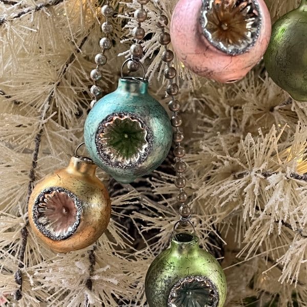 Experience the elegance and artistry with this Mercury Glass And Bead Dangling Christmas Ornaments Set. The antique gold, green, aqua, and coral colors will add a touch of sophistication to your holiday decor. Its 9.5″ lenght provides a delicate and eye-catching display, making it the perfect addition to your tree or garland.