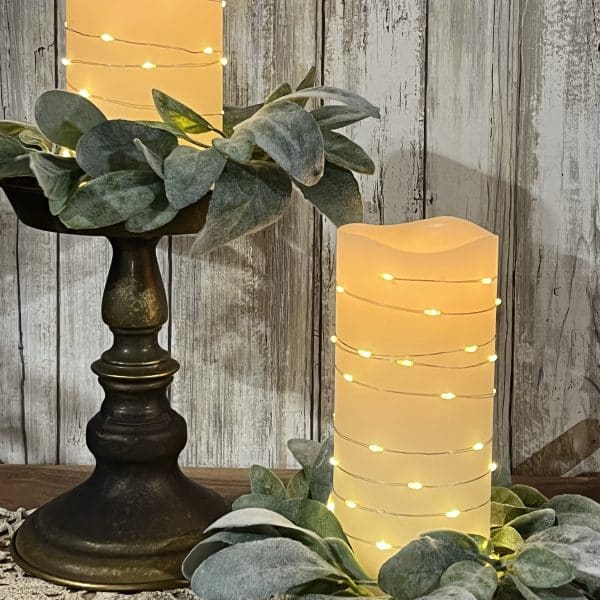 This 2-piece LED embedded light string candle set defines the atmosphere of any room with soft LED lights, give you all of the ambiance and realism of traditional open-flame candles without any of the usual drawbacks.