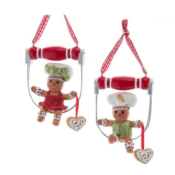Celebrate the magic of holiday baking with Kurt Adler’s Gingerbread Boy & Girl On Dough Cutter Ornaments! This whimsical assortment features two ornaments, each showcasing a charming gingerbread character perched atop a festive dough cutter. With delightful colors and intricate details, these ornaments embody the joy of the season and add a playful touch to your Christmas decor. Crafted from high-quality materials, these lightweight ornaments are perfect for hanging on your Christmas tree, decorating garlands, or using as unique accents throughout your home. Their adorable designs make them ideal for families, bakers, and gingerbread enthusiasts alike, spreading warmth and cheer during the holidays.