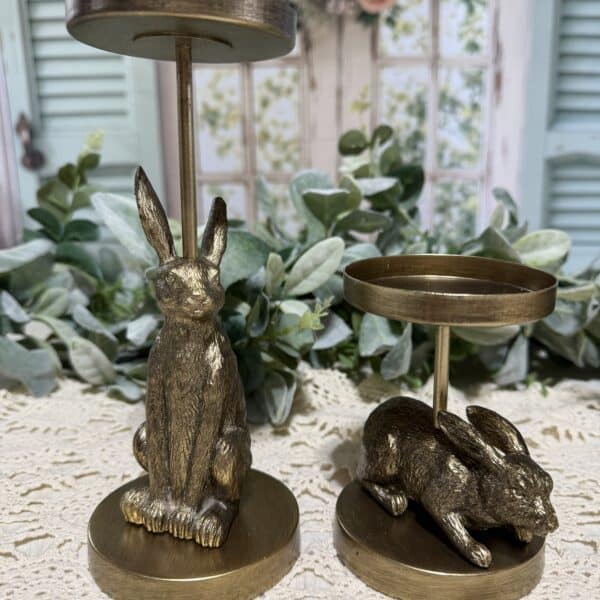 Golden Hare Duo – Pillar Candle Holders, Set of 2