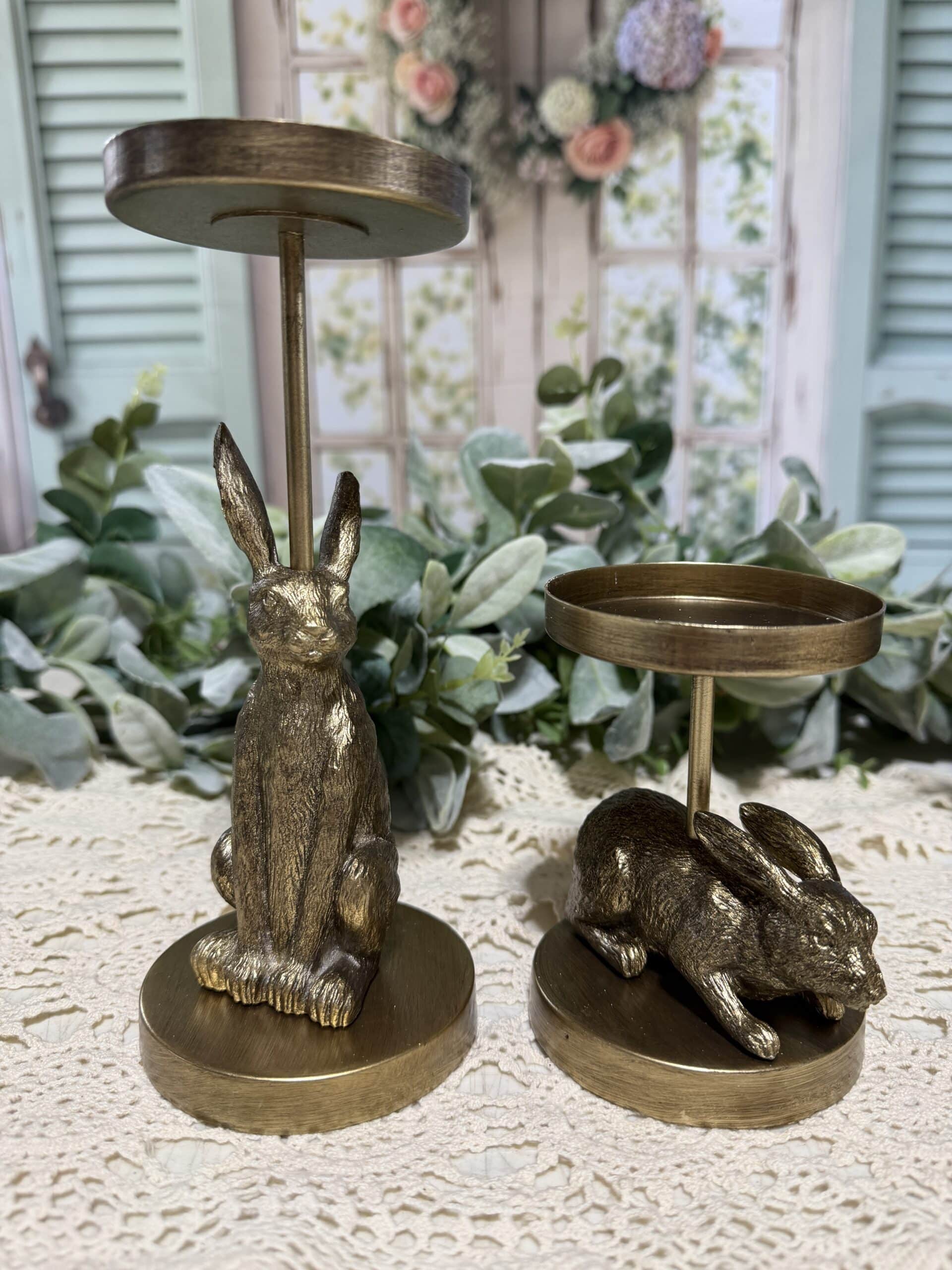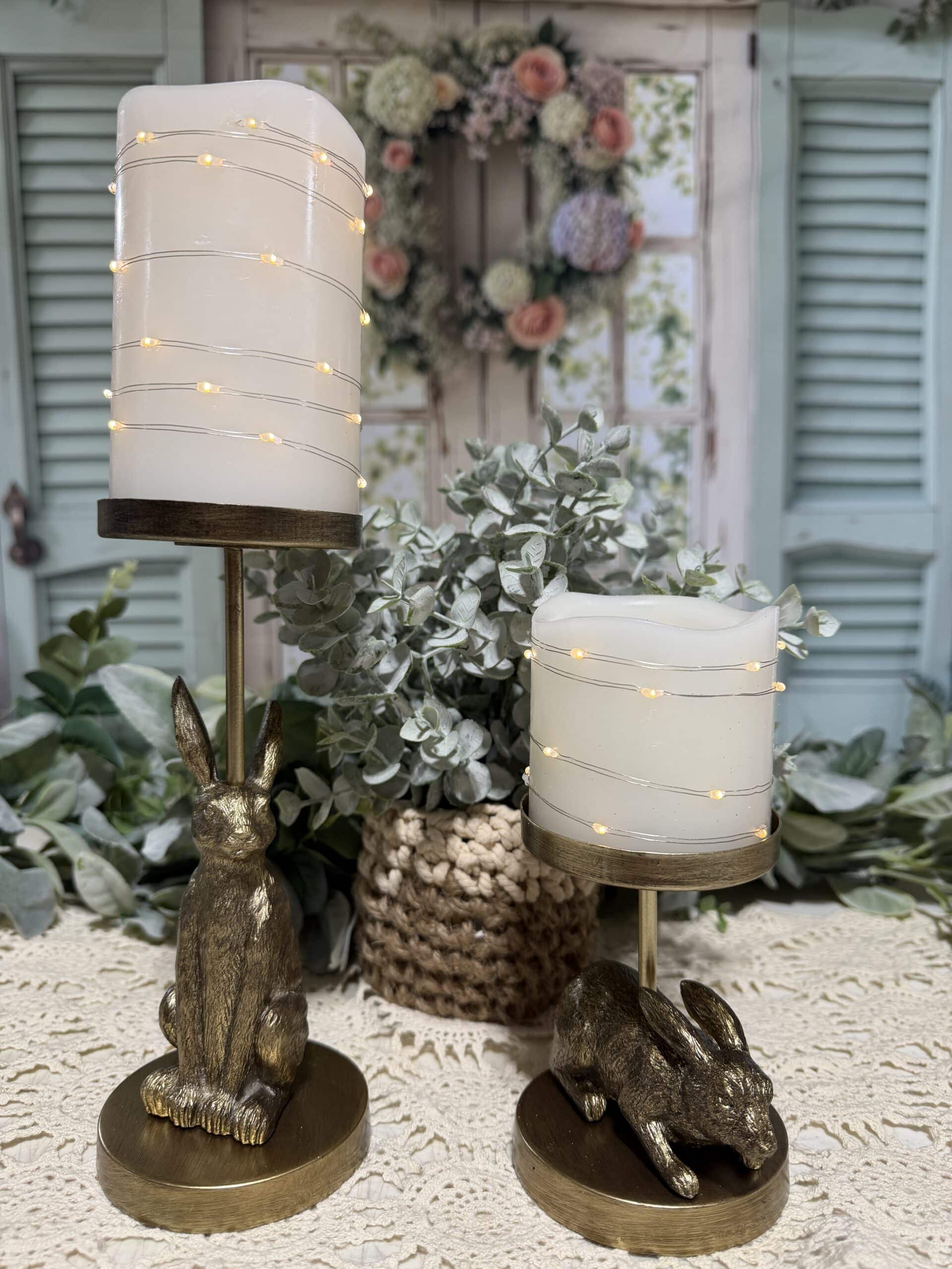 Golden Hare Duo – Pillar Candle Holders, Set of 2