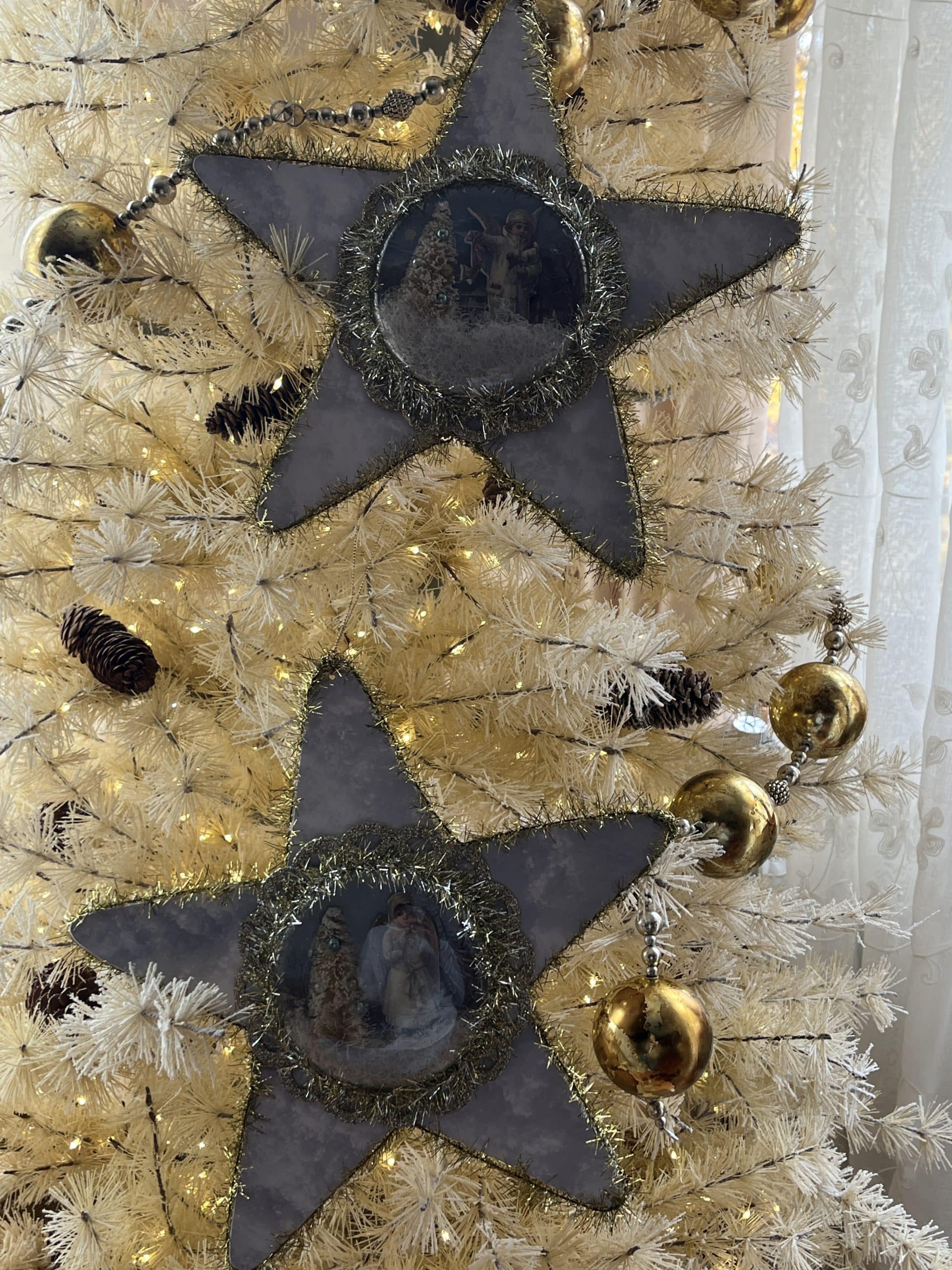 You can find the video on how to make the hanging star angels on my Facebook page.