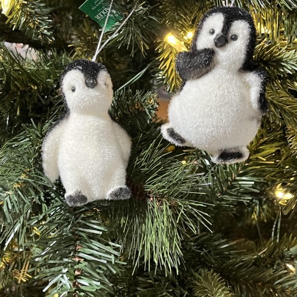 Kurt Adler’s Flocked Penguin Ornaments are a delightful and charming addition that brings the spirit of winter fun and festive cheer to your Christmas tree. This assortment includes five ornaments, two playful flocked penguins and three adorned with a cozy red scarf and a flocked texture that mimics the appearance of snow. These ornaments capture the essence of penguins enjoying the winter season. The combination of playful charm and a touch of winter enchantment makes them perfect for those who appreciate the joy of the holidays and the lighthearted atmosphere of the season. They are designed with meticulous attention to detail, showcasing the adorable penguins and their festive scarves. They can be hung from your Christmas tree, used to embellish a wreath, or incorporated into your holiday decor in various creative ways. These ornaments are perfect for those who want to infuse their holiday decor with a sense of winter playfulness, holiday merriment, and the simple joys of the season, or simply wish to create a cheerful and festive atmosphere for family and friends. They embody the spirit of holiday festivities, simplicity, and the pleasure of adorning your home with a touch of holiday magic. As you hang these ornaments on your Christmas tree, they become a reminder of the joyful and heartwarming moments of the holiday season, evoking the fun and merriment of penguins in a winter wonderland and the simple charm of holiday traditions, inviting you to celebrate the magic of the season with a playful and festive tribute to the spirit of Christmas.