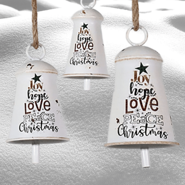 Complete your holiday decor with the rustic charm of this set of three metal bells. Crafted from metal, these vintage-inspired bells are so versatile that you can add them to a tree, a garland, hang them on your porch, or just put them on your table to give your holidays a little more flare.