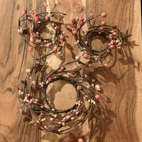 Pink Pip Berry Candle Ring with Rusty Star Set of 3