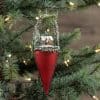 This is a charming 12.5″ painted Mache Snowman. He is adorn with a red snowy top hat, a holly berry collar, and he is holding a cream bottle brush tree with vintage looking ornaments! He would make an adorable addition to your winter decor!