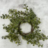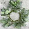 This candle ring features silk eucalyptus leaves and beautiful red silk flowers which are all wired for easy shaping. You can use it as a candle ring or hang it as a small wreath.