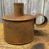 Rustic taper bowl is a metal taper holder with a rusty, distressed finish. Bowl has plenty of spare space between the holder and the sides, making it the perfect choice for displaying a pip berry candle ring or filling with rosehips. Taper not included.