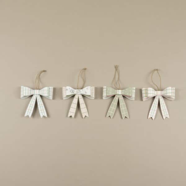 Add a touch of cottage-core charm to your décor with this delightful Set of 4 Pastel Plaid Bows. Crafted from high-quality paper with a delicate, structured design, these ornaments feature a soft palette of sage green, blush pink, and cream. Each bow showcases a unique combination of vintage-inspired patterns, including classic grids, subtle florals, and playful polka dots, creating a curated yet cohesive look.