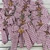 Each angel measures 5” long x 3.5” high and has a burgundy and tan check homespun hanger. Homespun has a habit of fraying at the ends so these hangers do have a lot of threads on the sides but are easily changeable to your fabric and color choice.