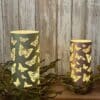 They look pretty unlit, and really shine at dusk: the etched meadow pattern catches the fairy lights and throws a gentle, botanical stencil onto nearby surfaces. Nice for everyday ambience or a quiet seasonal touch that doesn’t scream for attention.