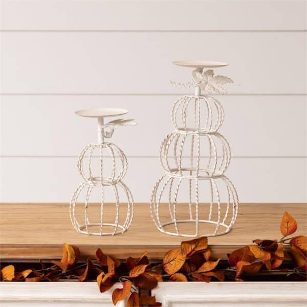 These white wire pumpkin candle holders will add a touch of elegance to your fall décor. They are perfect for creating a cozy and welcoming atmosphere, especially with the addition of your favorite candles (not included).